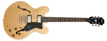 ...but, after adding up gift bucks and realizing I had $400, the iPhone 4S 64GB itch was quickly put out by hollow-body fever, in the form of an Epihone DOT 335 in natural finish. After tinkering with bridge and pickup height it is a great jazz guitar but also amazing for lead runs and quite nice sustain and feedback. The voice is also a bit more woody and nasal than the monster caramel wall of the PRS, playing like an acoustic guitar but very nice even with the basic stock alnico 57 pups.