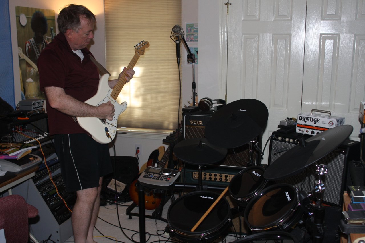 I’d get off work at midnight in the Phoenix August heat, come home, have cookies, and set up and play on the patio at low volumes. I started seriously jamming and song recording with Derrrick Bostrom on drums that fall.