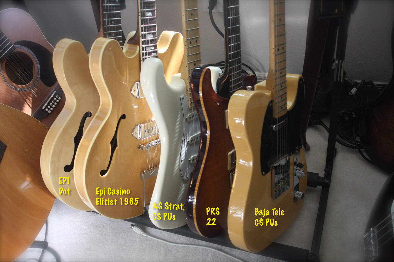 Ok, that's enough GAS for 2012 - Strat, Tele, Fender amp, Casino -- time to make some music. So the rack currently is (see below):