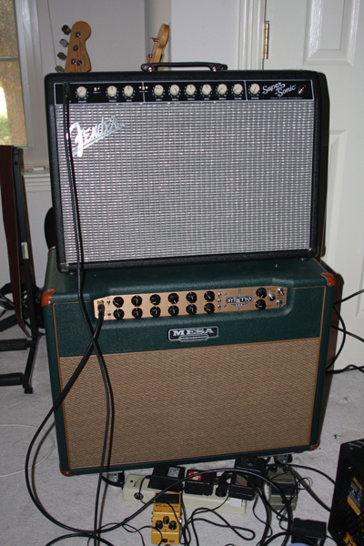 Lastly, I was getting crazy ideas about reshuffling the amp lineup somewhat, when I buckled down and retweaked the Mesa Stiletto Ace and the Marshall 1959 Super Lead. The Mesa has confusing knobs and just needed the effects level on the back set right to bring out the MV levels to spectacular at bedroom level. The Marshall I had pulled 2 EL84s out of years ago to drop it to 50w and in rechecking the ohms for the cab on Google came across alot of "don't do that" threads, so I put it back up to 4 EL34s, did the Channel 2 to Channel 1 patch cable thing, and - viola - sweet warm cascading vintage crunch at reasonable levels (it has a MV mod). Only 1 sound but sweet, sweet, sweet, esp with a humbucker. So ... the Mesa and Marshall aren't going anywhere.